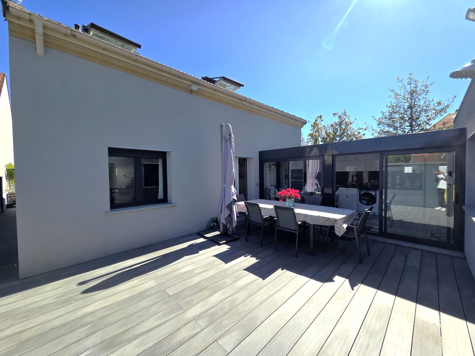 SAVIGNY SUR ORGE. Dans le quartier pavillonnaire calme et recherché du Plateau, à proximité immédiate des écoles, commerces et transports, idéal pour deux familles, très belle maison de 2018 de 9 pièces de 190m² divisé en deux logements avec entrée distincte. La première partie se compose d'une entrée sur veranda, salon salle à manger de 46m², grande cuisine équipée donnant sur terrasse, une chambre, salle d'eau, wc et un grand bureau, à l'étage : deux grandes chambres, salle d'eau avec wc. La seconde partie se compose d'une entrée sur veranda, séjour avec cuisine américaine, salle d'eau avec wc, à l'étage : une grande chambre, un bureau ou chambre d'enfant, wc. Pour la stationnement, 3 places de parking sur le terrain. Pour le stockage, deux grands abris de jardin. Rare sur le secteur! A visiter rapidement !